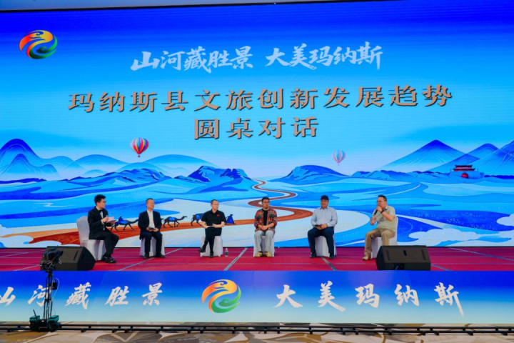 圆桌论坛环节,新疆旅游协会会长吉祥,浙江久住文旅集团董事长李照辉,中国国家旅游民宿中心主任董艳丰,新天略策划公司董事长代宪礼,浙江浙旅投资有限责任公司新疆项目总经理王昶嵩五位嘉宾,围绕 “玛纳斯县文旅创新发展趋势” 主题分享。嘉宾们一致认为,玛纳斯资源独特、区位优越,应坚持轻资产、线路化,聚焦民宿、酒旅、康养、自驾等业态,政企携手做强品牌、做优服务,共推玛纳斯文旅高质量发展。