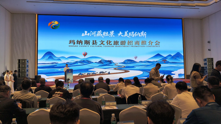 4 月 27 日,玛纳斯县文化旅游招商推介会在乌鲁木齐城投万达嘉华酒店隆重举行,220家企业代表齐聚一堂、共话合作。昌吉州文化旅游商会、新疆旅游服务行业商会作为此次活动协办单位,组织50多名会员企业参加。活动以 “山河藏胜景 大美玛纳斯” 为主题,旨在全面打响 “天山金凤凰・碧玉玛纳斯” 文旅品牌,全方位展示玛纳斯县文旅资源优势与投资商机,聚力推动文旅产业高质量发展。