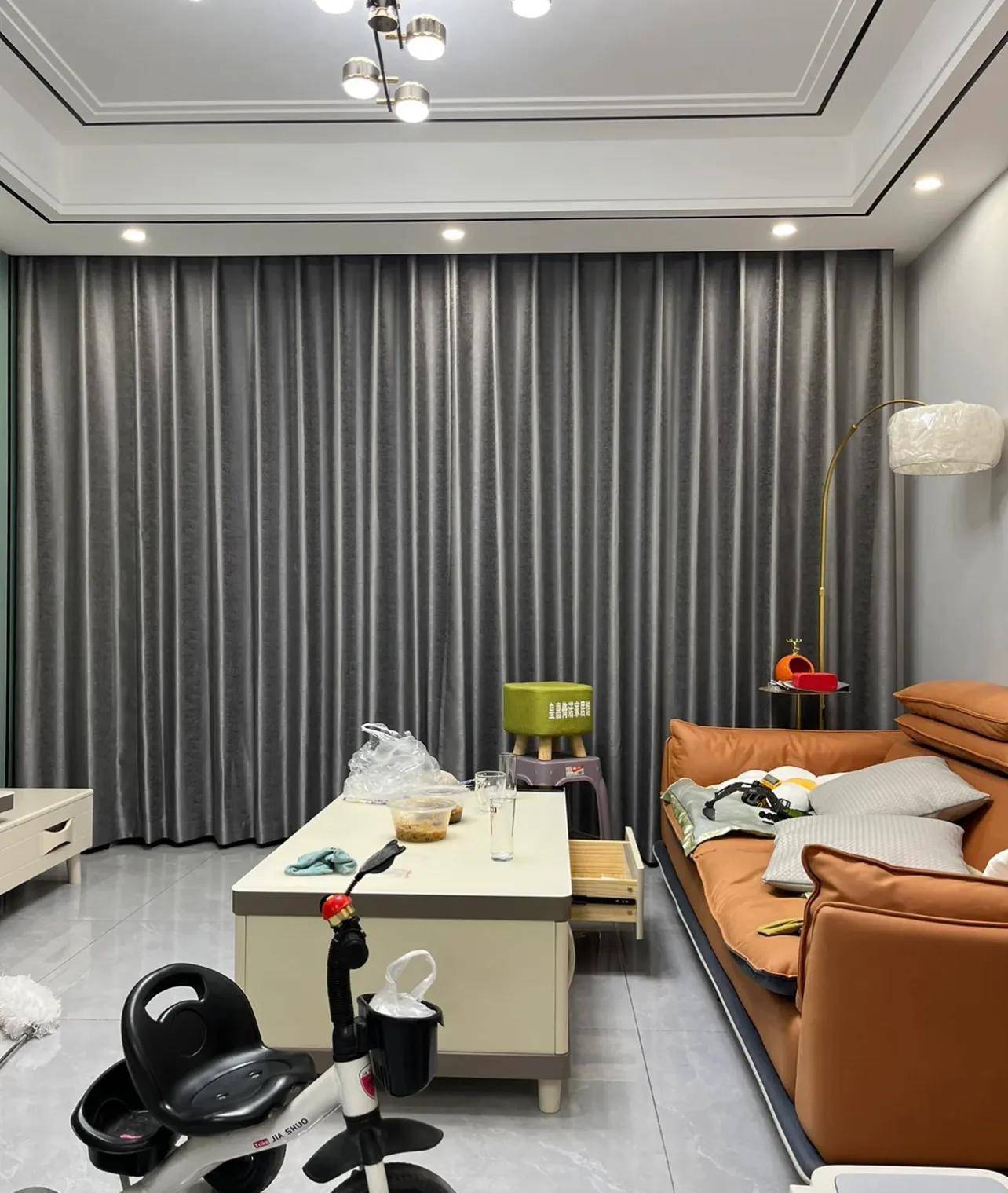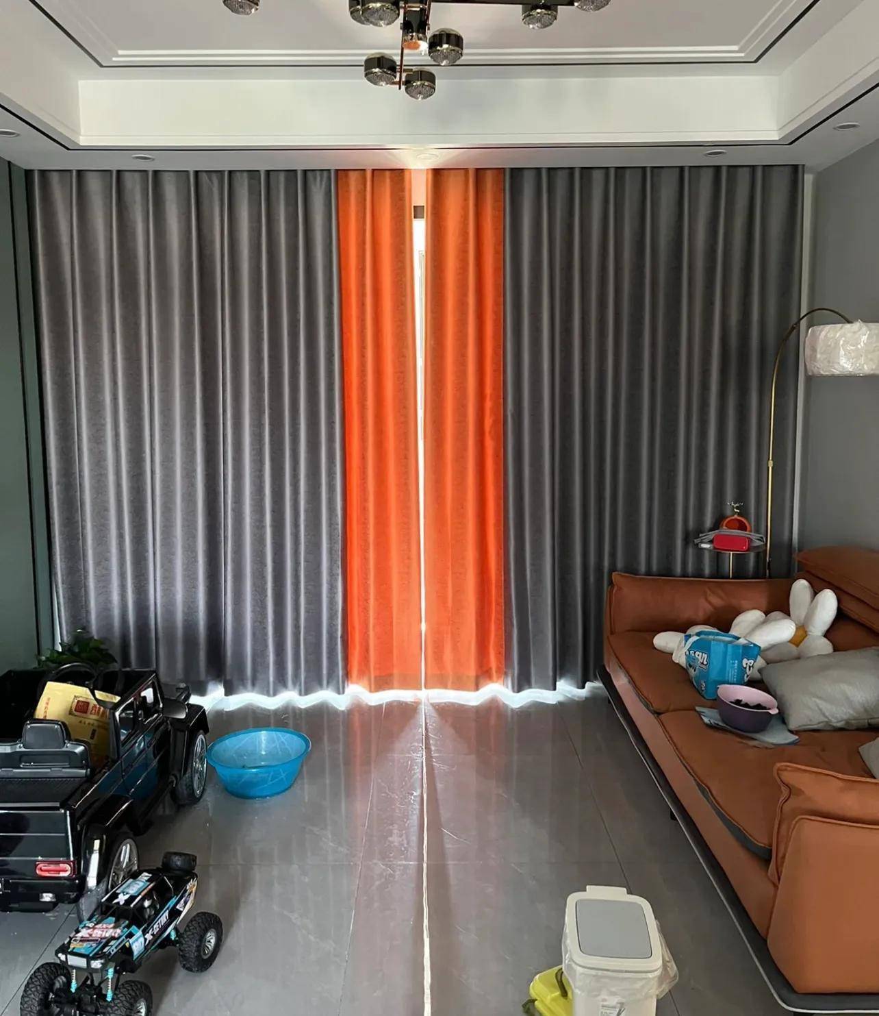 相同场景,如果成纯色的窗帘,效果会好很多。