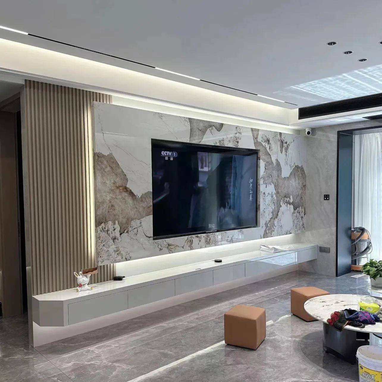 因为我入行这8年来,见识过太多被淘汰的电视墙,所以当初就笃定岩板+格栅电视背景墙总有一日被淘汰,如今已经开始有迹象了。