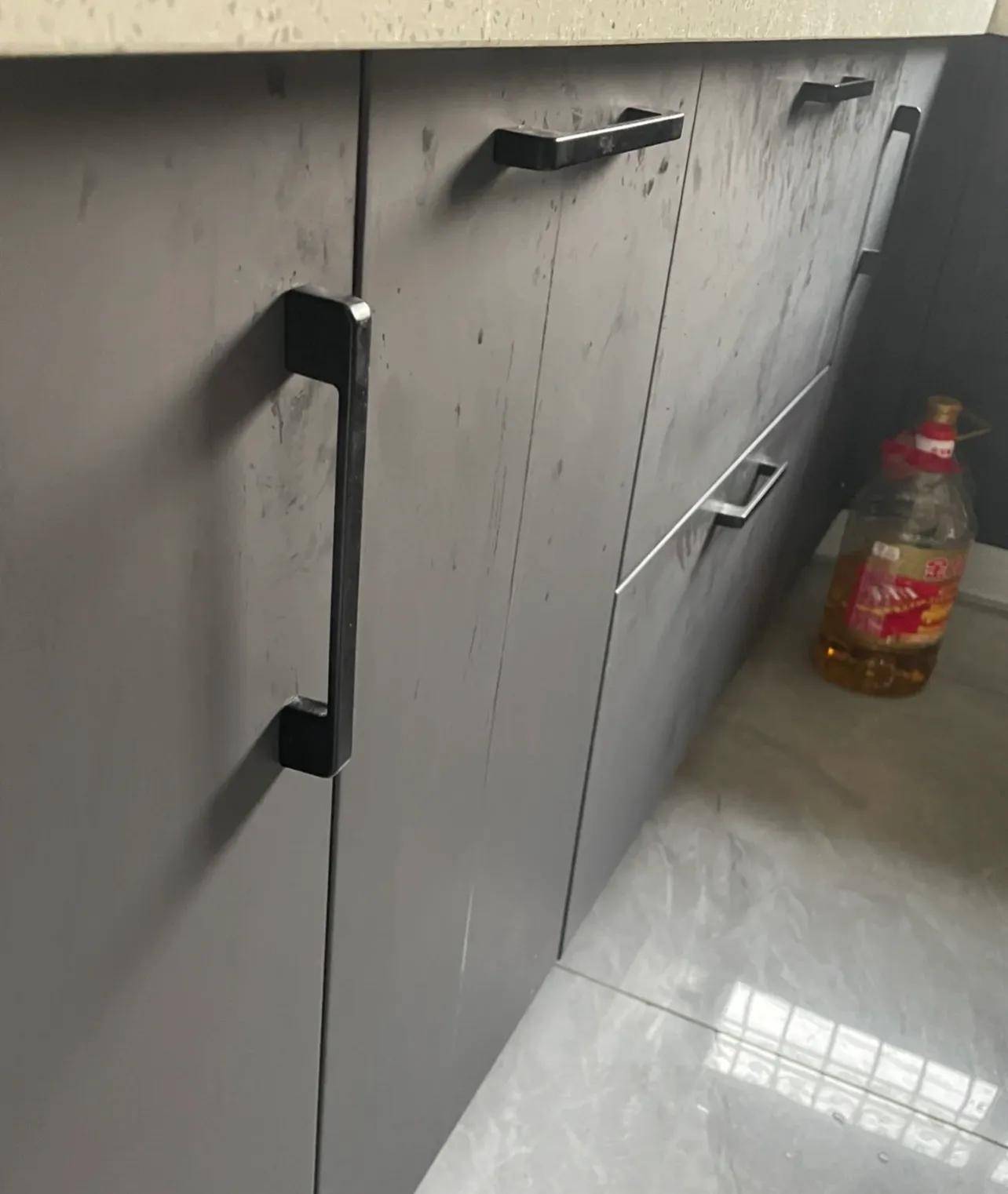 4、厨房肤感膜柜门肤感膜质感真的很好,但也确实容易附着脏污。