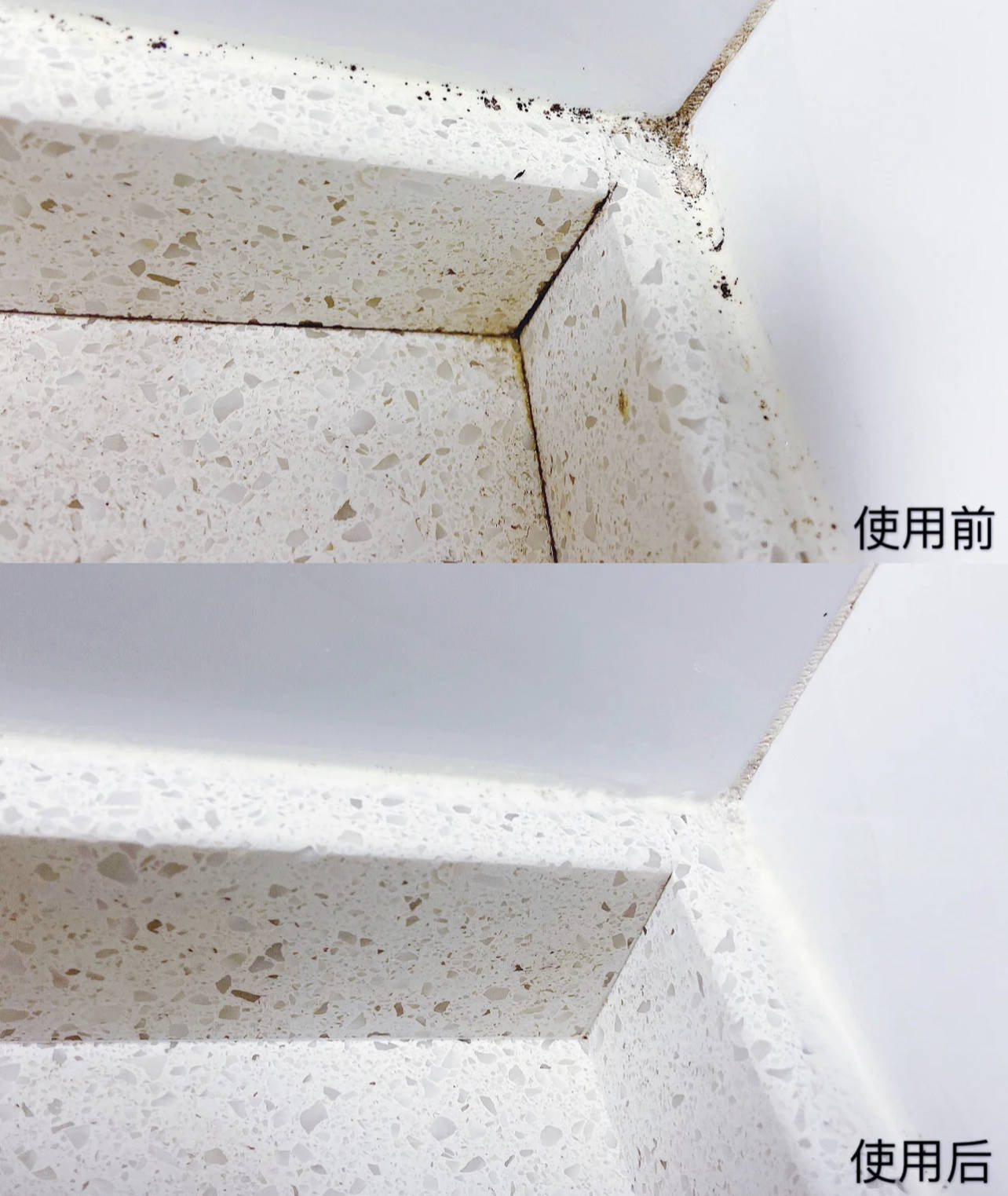 如果家里已经有挡水条,可以用除霉啫喱去给玻璃胶除霉,效果非常不错。