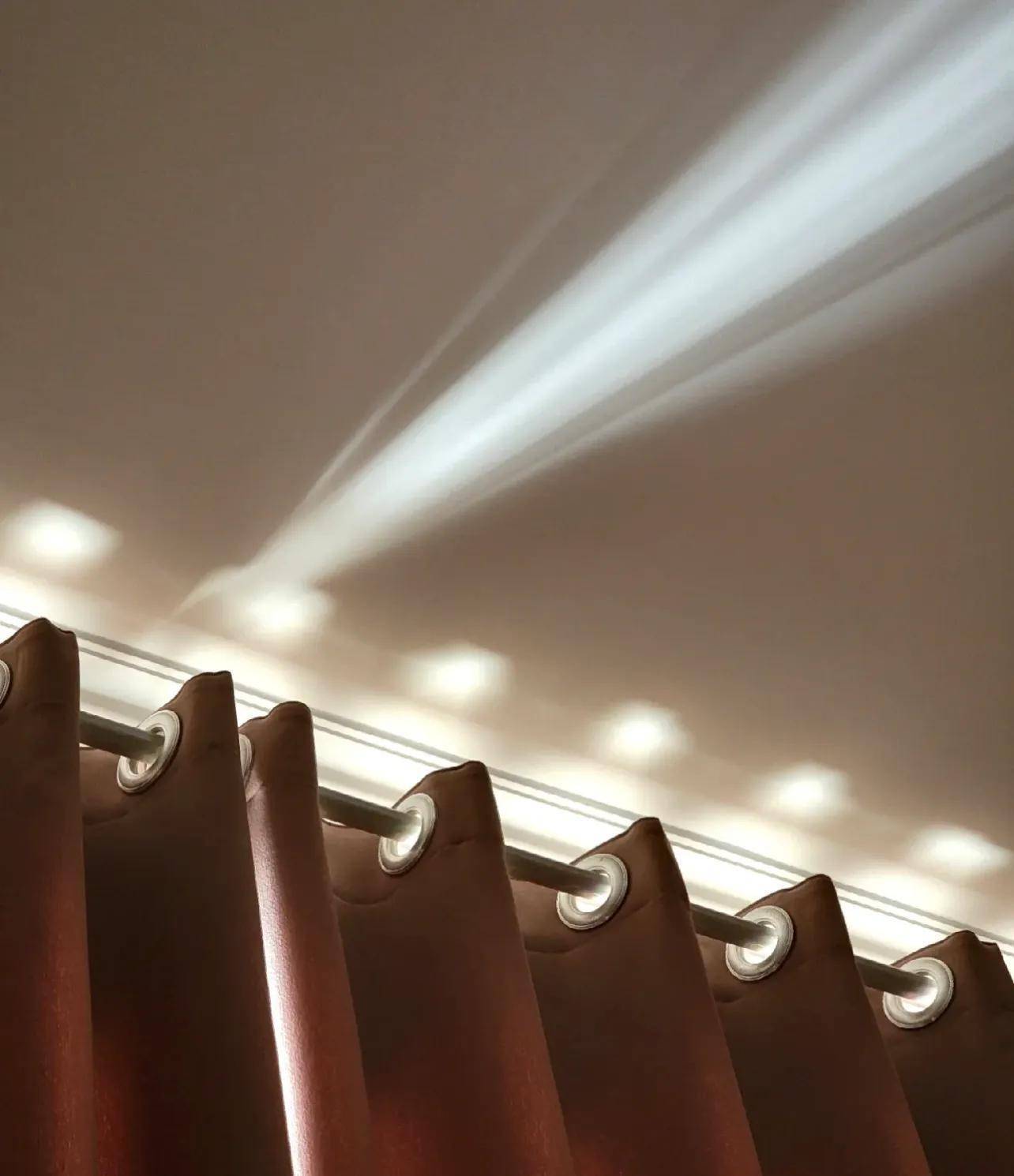 但其实呢,这个缺点,并不是无可避免,有些家庭如果窗户没到顶,把罗马杆做高一点,其实漏光问题,并不是那么严重。